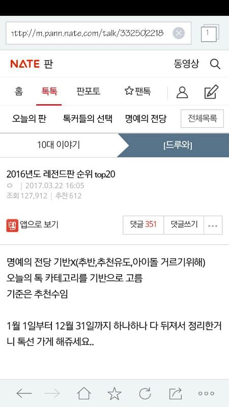 일단 저는 모바일로는 네이트앱으로 판을 보는데요