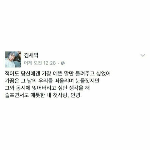 처음에 나에게 'ㅇㅇ안녕!' 하면서 내 별명을 부르며 인사를 하는 너를 보곤 나에게 인사해주는 남자인 친구가 처음이라 그저 나에게 친절히 대해주구나 착한애구나 싶었고 어느순간 너가 인사를 하지 않았을땐 그래도 나한테 좀 잘해줬던 애라고 나도 모르게 '내가 뭐 잘못했나' 하며 땅이 꺼져라 한숨을 푹푹쉬며 뭘 들었는지 기억도 안날만큼 수업을 들을때도 있었어. 내가 아주 조금 다가가서 다시 원래대로 돌아왔을땐 너무 행복했고 그 행복감을 알게된 순간 아, 이게 좋아하는거구나 깨닫았어 내가 널 좋아하구나 깨닫고 그 사실을 처음 알게된 아이가 지금 우리반의 내짝이고. 덕분에 학교 가는 모든날이 기다려지고 설렜고, 그토록 방학이 미울수가 없었어. 그렇게 모든것이 서툴고 처음이었던 난 나름 다가갔다면 다가간듯이 너를 보며 수줍어했고, 너를 보려 하루종일 찾아다니기도 했고, 정말 용기내 말도 걸어보기도 했어. 이 모든게 다른 사람이었다면 그냥 그러려니 흔한 일이겠지만 그 흔한일에 나의 모든 진심을 전해 담았는데 느껴지지 않았겠지? 물론 너를 좋아하기 전에 몇몇 좋아하던 아이들이 있었지만 1달을 채 넘기지 못하고 관심을 거뒀어. 너를 2년째 좋아하고 있다는게 무척 신기해. 똑같이 이루어지지 않았다는 사실에도 불구하고 그 아이들은 생각조차 나지 않는데 너는 밉기는커녕 모든게 다 나의 부족함 때문이고 내가 너에게 전했던 방식이 잘못됐구나 라고 그저 내가 원망스럽기만 해. 그리고 내가 의미부여를 해서 얼굴을 붉혔던 설렜던 일은 아직 날짜까지 생각날 정도로 여운이 깊었어. 너도 연애에 관심없는 평범한 중학생인 나를 그저 친구로써 관심을 주었던 것 뿐이고, 나도 내가 더 다가가지 않아서겠지? 우린 어느순간 대화도 하고 인사도 했지만 그 사이엔 예전같이 않은 무언가 이상한 기류가 흘렀어. 친구들은 모두들 다 고백하라는 얘기를 했는데 나는 널 좋아해도 사귈 자신이 없었어. 감히 내가 널 평생 보고싶어하는 욕심에, 관계를 시작하면 끝을 맺어야 한다는 사실에 주저 하고 고백을 하지 못했어. 못했다기 보다는 지금까지 내가 안한게 아닐까? 그렇게 겨울이 되가던 때, 너의 친구에게 너는 진짜 연애에 관심없고 할 마음도 없다는 소리를 듣고 내가 원했던 것은 분명 사귀는게 아니었는데 왜인지 그이야기를 듣고 매일 밤을 울며 보냈던 것 같아 그렇게 힘들고 포기할때쯤 난 나를 좋아해주는 친구를 만나게 됐어. 나를 이쁘다 해주는 것도 처음이고 나에게 하나하나 맞춰주며 사랑을 주었던 정말 착하고 고마워해야 할 사람인데 난 그 친구가 좋지 않았어. 사귀는 내내 찝찝한 마음만 늘어가고 단어에 무게감이 필요한 '사랑해' 라는 말을 매일 억지로 하게 돼고 좀 있음 좋아지겠지 하며 끌었던 몇십일간 난 그 친구를 진심으로 좋아했던적이 없었어. 이대론 아니라고 결심을 내린 후 정말 미안한 마음에 난 진솔히 헤어지자는 말을 전했고 그렇게 아직 나는 널 좋아하고 있네. 매일 밤 너와 운명이길 기도하며 잠이 들어. 며칠전 너와 우연히 손이 맞닿은 날 몽글 몽글한 감정이 피어오르고 얼굴이 붉어졌는데 이제 우리는 졸업을 앞둔 학생이고 얼마 볼 시간이 남지 않았는데 나에게 처음으로 사랑을 알게해준 널 잊지 않기 위해 써내린 글이야. 그러고 보니 당연한거지만 친구들에게도 널 사랑한다고 표현한적이 없네 이 말을 꺼내게 될 어느 순간 정말 크나큰 감정이 피어 오르고 무게감이 느껴질 것 같아. 그 날 오긴 오겠지? 널 알게 돼서 정말 기뻐 늘 마음이 먹먹하다 나의 첫사랑, 난 널 커서도 영원히 잊지 못하겠지만 너는 문득 옛추억이 떠오를때 내 생각 한 번 이라도 났음 좋겠다 고마워. 존재해줘서