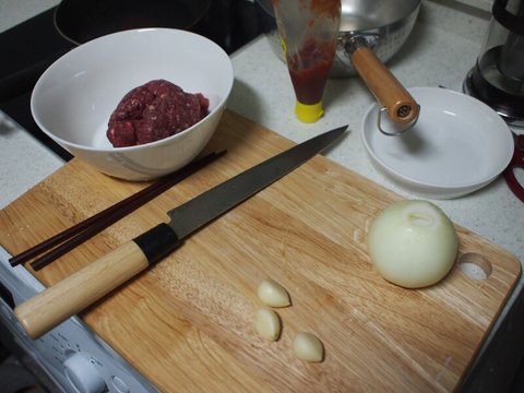 (지난번에 햄버거 만들고 쇠고기가 한 200그람정도 냉동실에서 잠들어있었...)