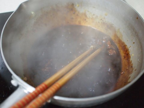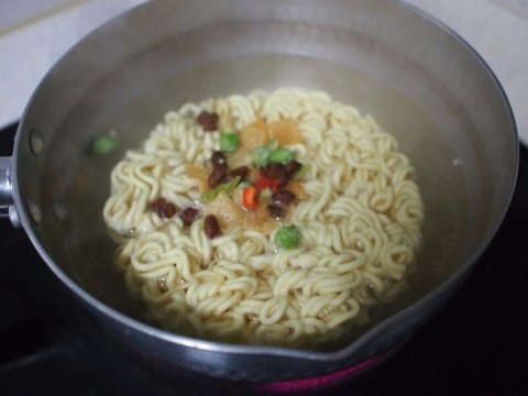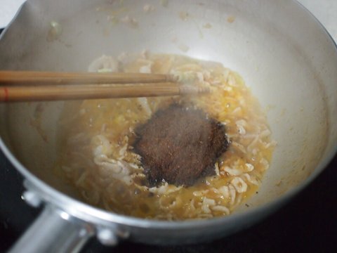 면수 추가 후에 분말스프 넣고 짜장을 만듭니다.