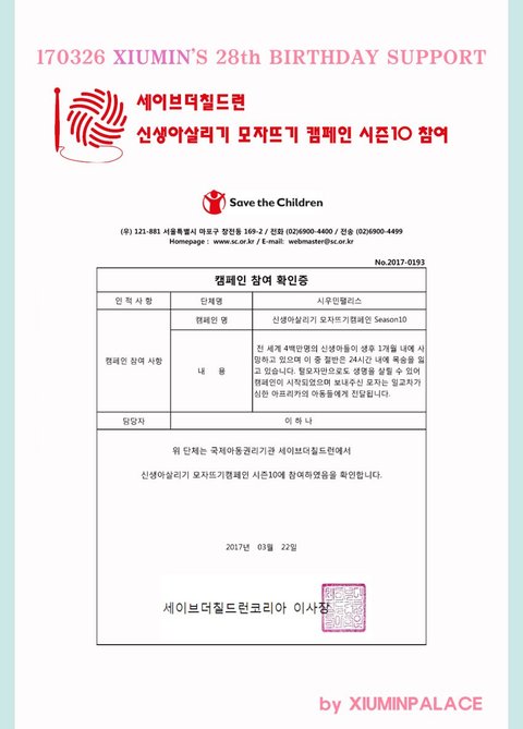 시우민 생일 기부!!!