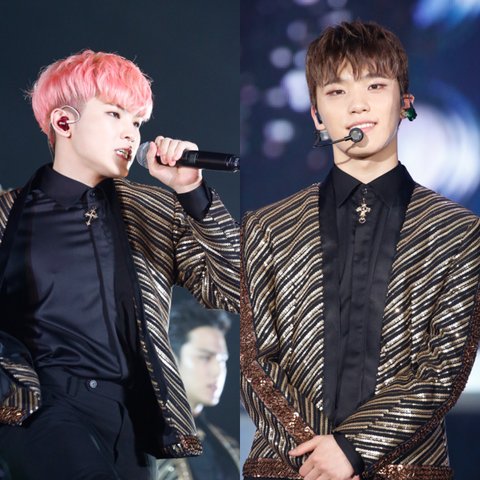 쿱스 준휘 원우가 세로줄무늬