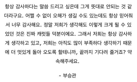 우리애 어떤애인지 제일 잘 아는거 캐럿이잖아! 다 잘될거야ㅠ 우린 애들 믿어주고 계속 사랑해줘야지 앞으로 더 힘든일이 있어도 잘 넘어가자 오래오래 캐럿하자 캐럿들 힘내ㅠ!