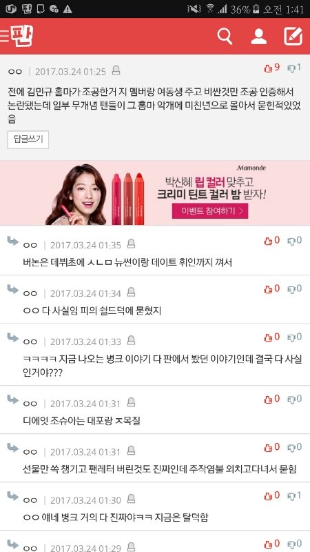 빨리 지금 베플바꾸고 베플 아니더라도 댓글 정화시켜야됨