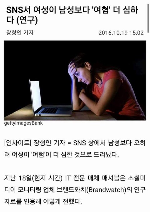 실제로도 메갈 워마드 출현 이후로 각종 포털에서 여혐관련기사가 급증했고