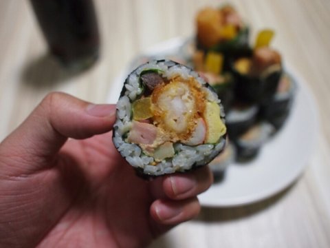 이번엔 새우튀김 넣고 살살 잘 말아주면!!