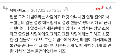 팬싸컷 낮아지라고 편지버리고 선물도버리자 라는말이있는데