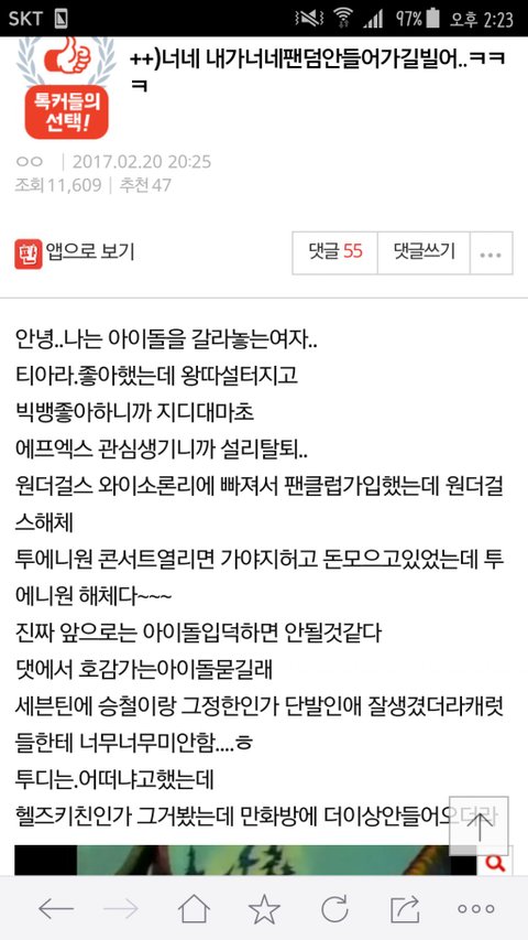 홈마들이 주고받은카톡도 있다면서 보고오라고함