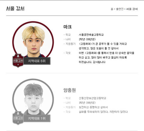 팩트만 말할게.. 고등래퍼 홈페이지 가면 양홍원 떨어진 표시 되어있음
