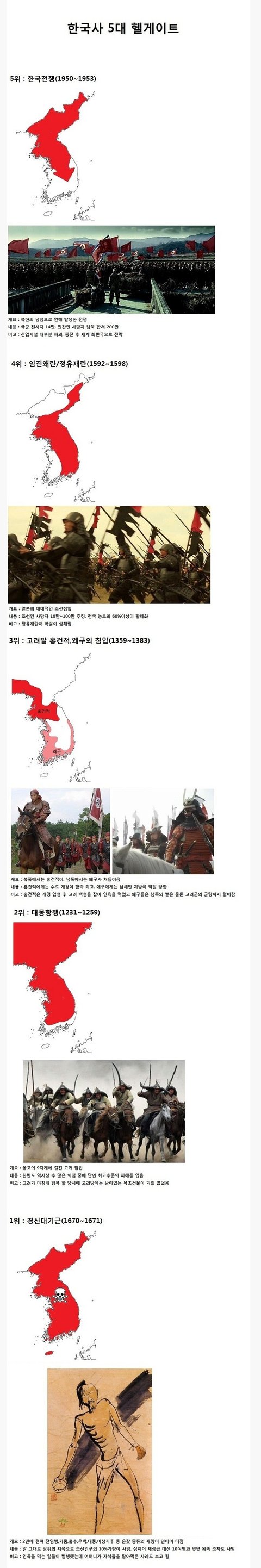 뫄, 비단 이런 큰 전쟁뿐이겠는가.. 역사적으로 끊임없이 작은 침략도 당해왔고 외세의 침략이 잠잠하다싶으면 정치적 내부분열과 환란으로 백성들의 고초는 말도 못 했지. 오히려 태평성대였던 적을 꼽는 게 더 빠를 걸.. 한국사 깊게 알지는 못하지만, 공부하다보면 혼자서 속 터져서 책 집어던지고 싶을 때 많음