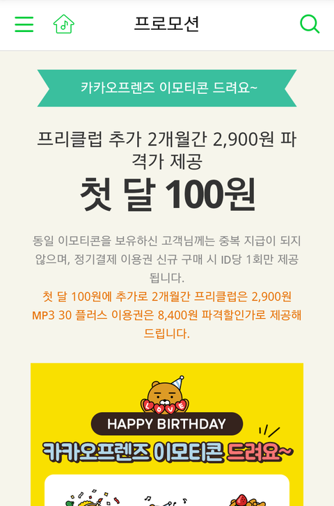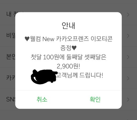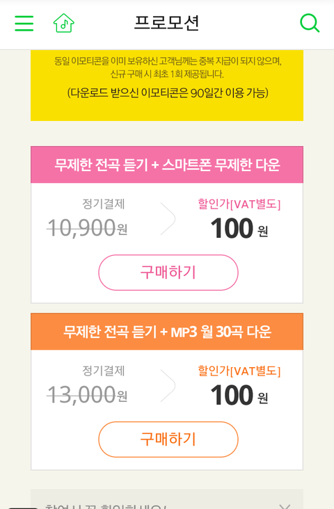 멜론 깔면 바로 뜨는 카톡 이모티콘 100원짜리 뭐시기 그거 결제해봐봐