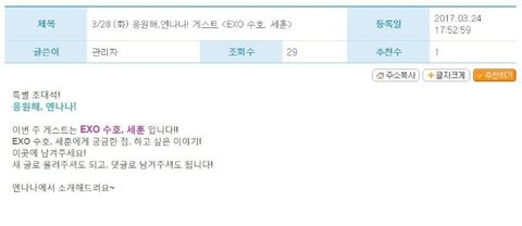 후배그룹 라디오에 준면이랑 세훈이 나온다는데.. 내 뒤에 맘모스냐?