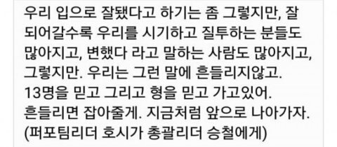 솔직히 타팬분들중에도 니가수 내가수 다소중해하는사람이 있는 반면 우리가수만 소중해하는 사람들 많이봤어 평소엔 가만히있다가 터지면 견제하고 물어뜯는경우가 종종있어 우리끼리 사랑하고 좋아하고 열심히 스밍돌리고 앨범사고 투표하면 우리 더 성장할수있어