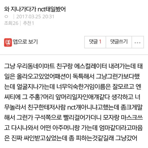 십대판에 태일 목격담뜬거같아서 가져와봤어여