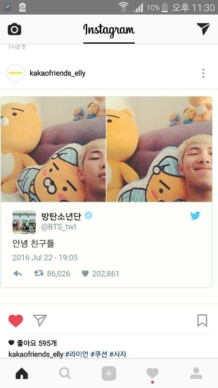 카.카오 인별에서 남준이 언급하심!