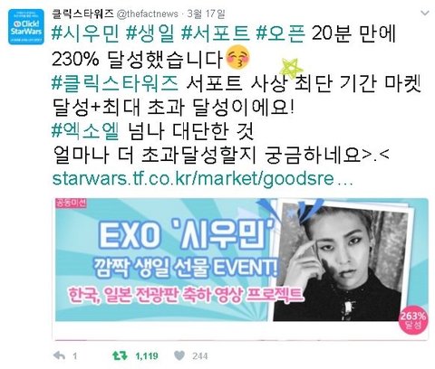 최단시간╋초과달성!!! 진짜 시우민팬들 화력 최고야 멋져!!!