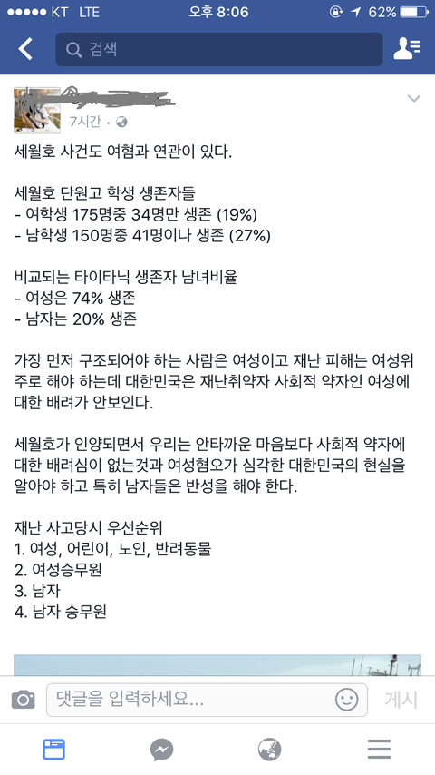 뭔소리야 저게 남자든 여자든 둘다 똑같이 소중한목숨인데
