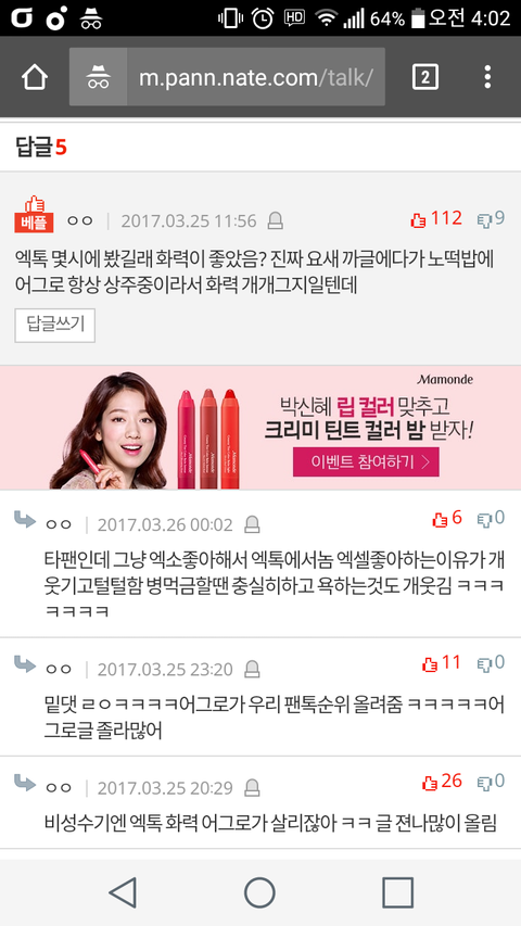 ㅇㅅㅇ........가끔 이상한 댓글 달리고 그런게