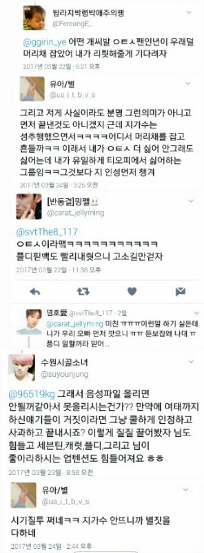 여자분 세븐틴한테 돈많이쓰시고 자주만났다는데 친해서 장난치는 느낌임. 꼽주는거보다는.