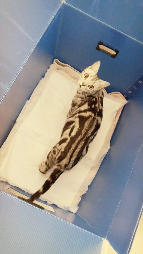 이거슨 이사박스+전기방석+담요+배변패드를 깔아 만든 녀석의 출산상자렷다