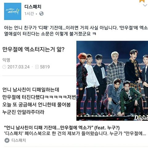 디패 연애설 엑소 아님