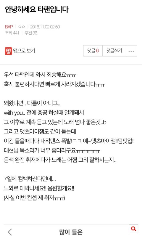 타 팬톡에 응원글도 썼지만 캐럿인거 밝히지도 않았어