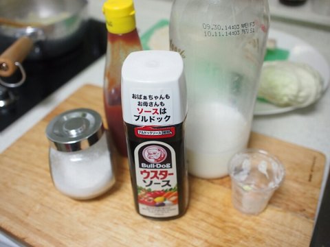 다음 우스터소스 1소주컵, 설탕 1소주컵, 케챱 1소주컵,