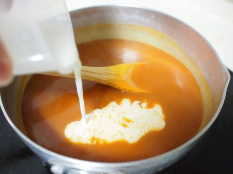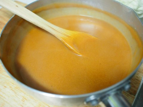 밀가루 1소주컵에 버터 1소주컵, 버터 먼저 녹이고 밀가루를 풀어야 루가 잘 만들어집니다.
