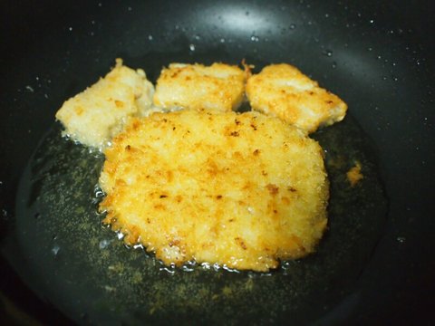 뜨건 기름에 푹 담궈서 튀기고 싶지만 비루한 자취생은 낭낭하게 기름 넣고 그냥 굽는 수준.