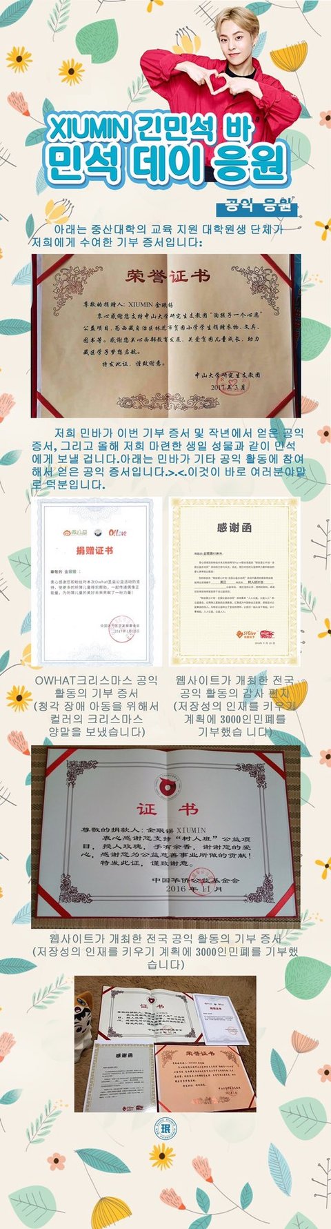 중국 시우민바에서 기부하심