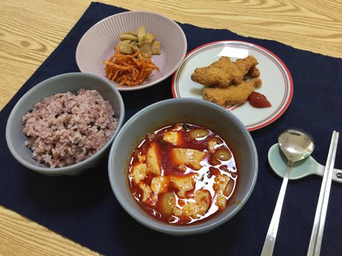 6. 순두부찌개, 진미채볶음, 어묵볶음, 치킨너겟