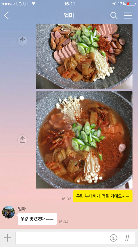 오늘 저녁 메뉴는 부대찌개라고 알려드렸더닠ㅋㅋㅋㅋㅋㅋ