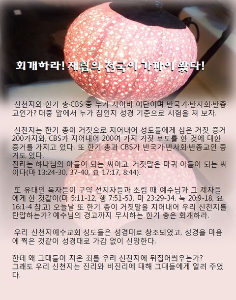 여러분들은 이천년 전에 이 땅에 오시어 당대 유대교 목자들에게 당당하게 복음을 외치셨던 예수님의 말씀을 알고 계시나요?"회개하라 천국이 가까이 왔느니라!"