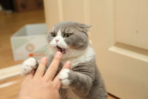 오른손을 물면 왼손을 갖다 대세요..냥집사들의 숙명입니다