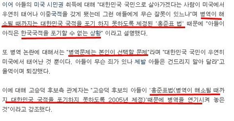 2005년 홍준표가 발의해서 만든 홍준표법... 심지어 홍준표는 고의 병역기피자를 실형에 처하도록