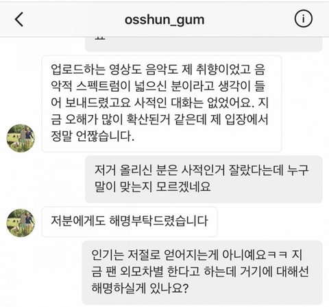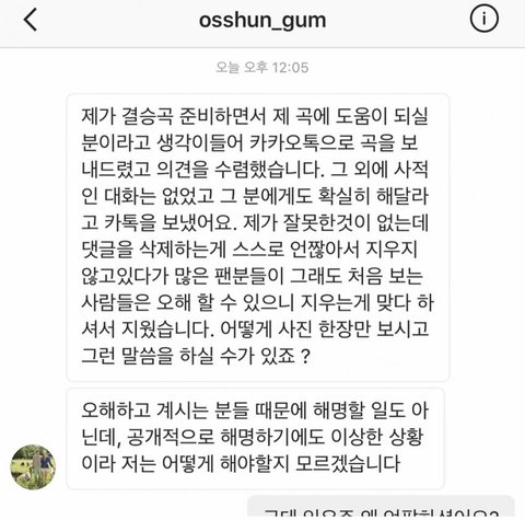 최하민 팬이랑 개인적으로 카카오톡했다고 인스타 저격당했는데