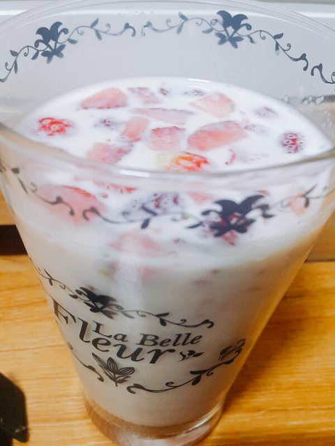 엄마가 딸기우유 만들어줌
