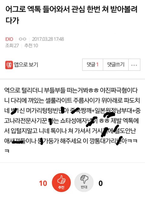 어떤새끼야 ㅆㅂ 야 솔직히 우리 엑톡에서 앵쉬리조ㅗ아하면 좋아하지ㅜ저정도는 아니지않냐 ㅆㅂ