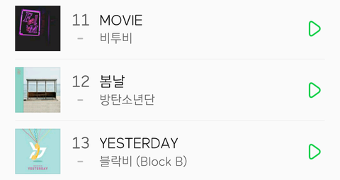 저 셋 노래 너무 좋아!!! 방탄곡은 .. 내가 이십대 후반.. 직장인인데.. 친구랑 거의 놀시간도 없고.. 만날시간이 휴가 내야 볼 수 있는데.. 카톡이나 연락해도 친구 보고싶는데 그게 와 닿아서 계속 듣는편.. 위로가 되고 블락비곡은 신나면서 중독성이 너무 강하고 후렴 부분이 계속 흥얼흥얼 거려서 너무 좋고 비투비 뮤비는 뭔가 몽환적...? 계속 듣고 싶은 곡이야.. 취향 맞는 음악 찾아듣는...편이야..