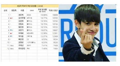 프듀 101 남자판 마이돌 투표현황 김사무엘 고정픽하자ㅜ