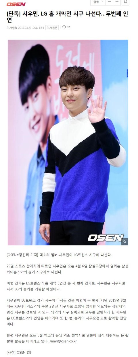 [단독] 시우민, LG 홈 개막전 시구 나선다…두번째 인연
