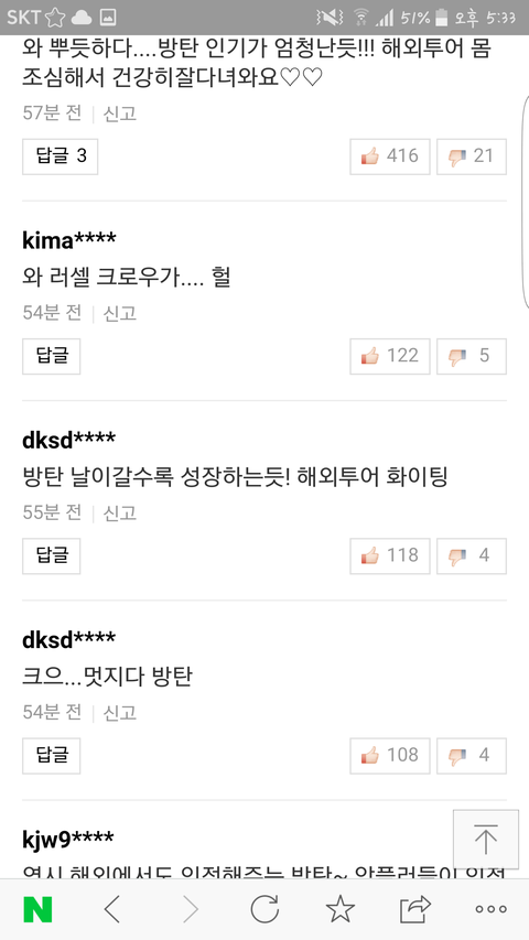 댓글꼬라지 하곤...쓰니가 머글이라고 밝히고 아미라고 한 적도 아니라고 한 적 1도 없는데ㅋㅋㅋㅋㅋㅋ방탄 칭찬글 올라오면 유난 떠는 건 너네들 아니냐?