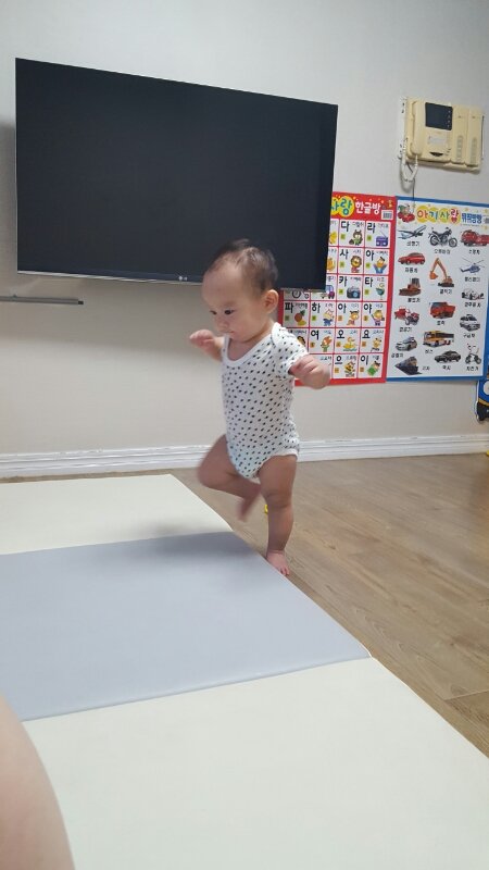 아직도 비틀비틀 불안하게 걸어요.