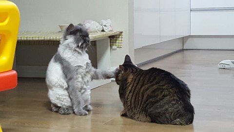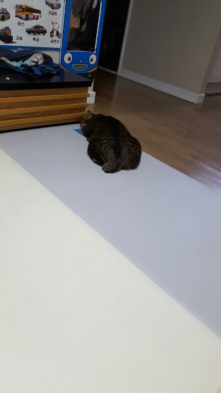 랑이를 붙잡고 재잘거리는데... 랑이는 그닥 안좋아하네요.
