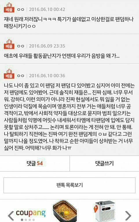 ㅜ리 전에 E1B1S 글로 사과문 썼을때 반응 어땠음?