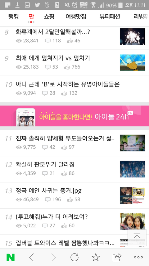 여시, 남연갤 등 ㅇㄱㄹ들이 판에몰려온 후부터 까글 개많아지고(특히 방탄, 엑소) 지난일까지 끌어서 욕하고 개판이네ㅅㅂ 특히 방탄은 비슷한글올려서 톡선 많이올리게해서 욕먹이는거 개티남 말투, 내용 다 비슷하고 추천수는 높은데 댓글은 욕밖에없고ㅋㅋㅋㅋㅋ 내가 방탄, 엑소보다 선배그룹팬이라서 2014년부터 판에 계속있었는데(인증가능) 최근처럼 판분위기 개판인적 없었다 여시 남연갤 망했다고 들은것같은데 여기 물흐리지말고 꺼져ㅈㅂ