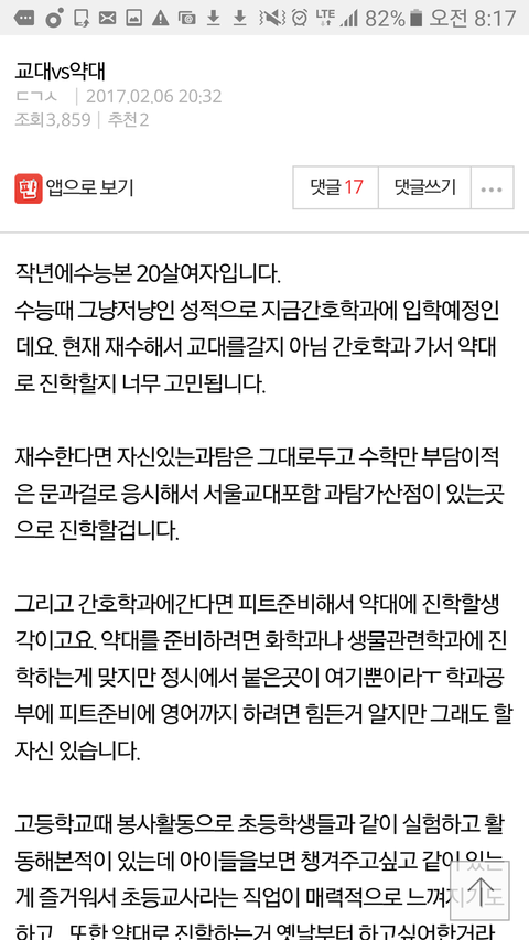 같은 얘기하면서 교대가 얼마나 대단한 직업인데 입결보