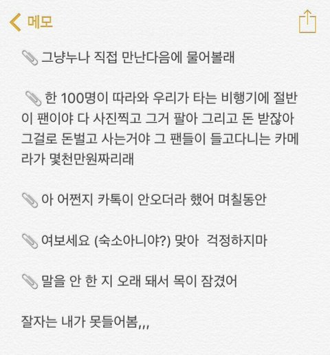 +추추가)) 둘이 친해보이는데 사실이냐고 하는 분들도 계신거 같아서 덧붙혀서 설명하자면, 멤버 팔면서 뒷 얘기하는거랑 친한거랑은 별개인 부분인듯ㅋㅋ.