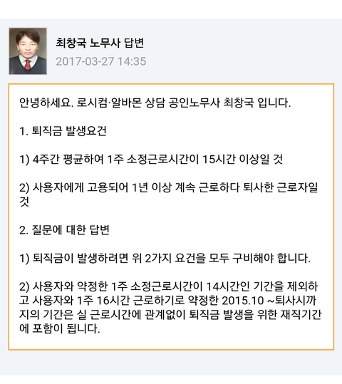 -몇번 빠진적 있지 않느냐 그거때문에 퇴직금 해당이 안된다