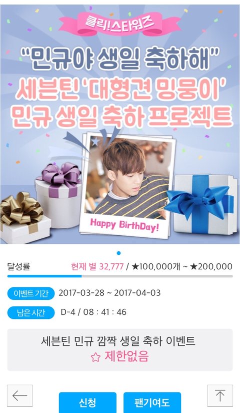 민규 생일 서포트 입금 참여가 넘 저조하대ㅠㅠ